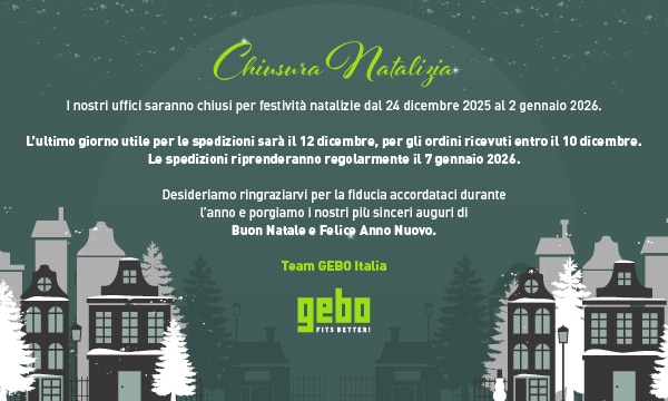 Il marchio GEBO è sinonimo di qualità, affidabilità, efficienza e servizio nella soluzione dei problemi. Il nostro obiettivo è quello di soddisfare al massimo le vostre esigenze, così da crescere insieme quotidianamente ed essere all’altezza delle vostre aspettative.